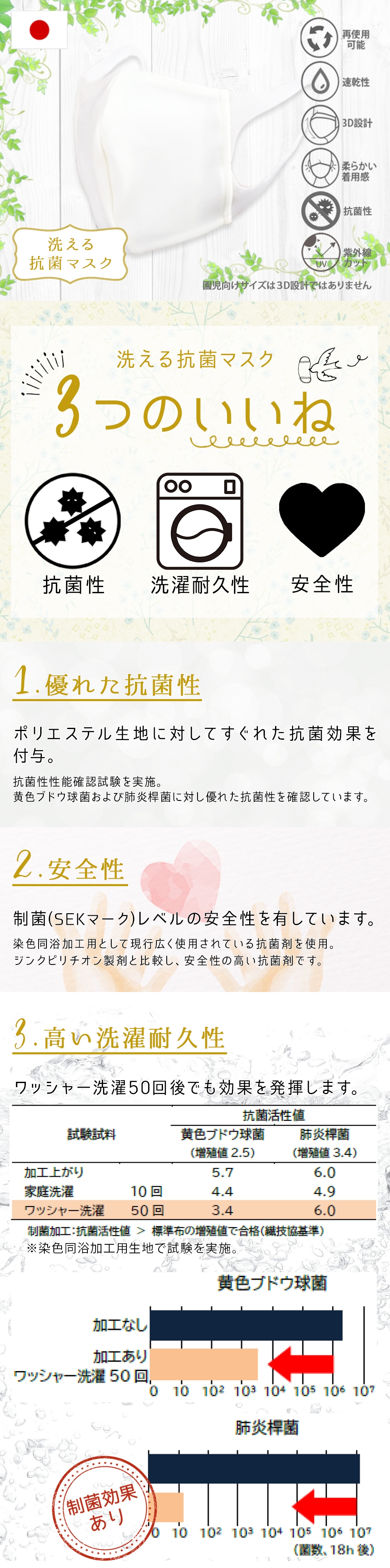 洗える抗菌マスク 大人用 サイズが選べる3枚セット...