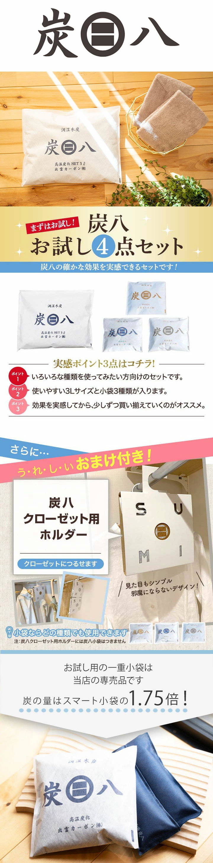そんなあなたにおススメの『炭八 おためし4点セット』をご準備しました!