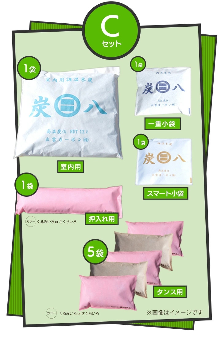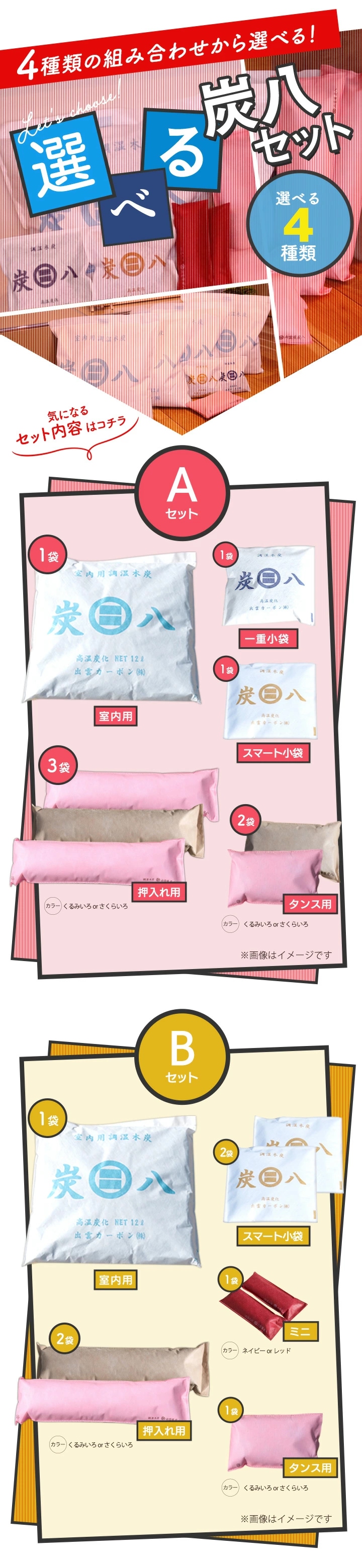 いろんな場所に適した炭八を様々なパターンで4種類のセットをご準備しました。